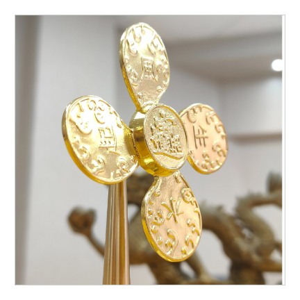 風車の羽根は水滴のようなデザインが施され、財運が水のように循環することを象徴しています。お部屋やオフィスに置くことで、風水のエネルギーを活性化し、運気の流れを整える効果が期待できます。